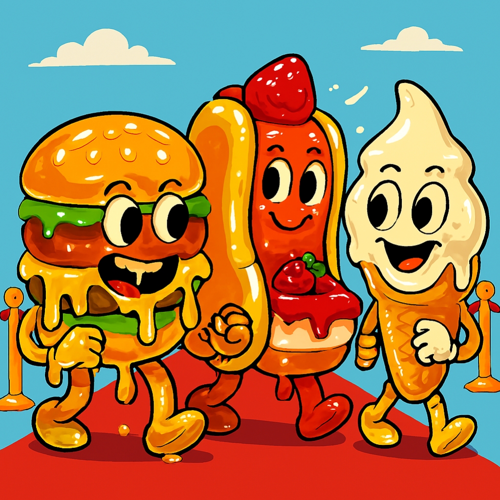 This is my Snack Squad Comic World. This episode was about the Red Carpet walk for snack squad vs fake food squad. The fake foods are shining in glory ready to eat.